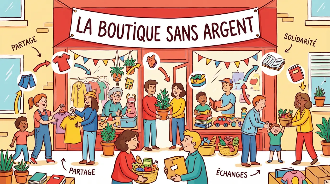 La Boutique sans argent est une association loi 1901 fondée en 2013 à Paris par un collectif de citoyens convaincus que les objets du quotidien méritent une seconde vie et que le lien social naît aussi de l’acte de donner sans attendre de contrepartie. L’idée s’inspire du « Magasin pour rien » de Mulhouse, précurseur alsacien de ce type de structure apparu au début des années 2000, mais elle s’en distingue par son implantation urbaine dense et sa longévité dans un arrondissement parisien à forte mixité sociale.